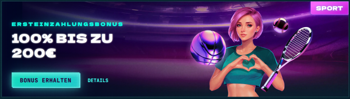 Solltest du dich mehr für Sportwetten interessieren, kannst du bei der Anmeldung auch den Bonus hierfür auswählen. Dadurch profitierst du bei deiner Ersteinzahlung von mindestens 20€ von einem 100% Bonusguthaben bis zu 200€. Dieser Betrag wird dir erst gutgeschrieben, wenn du deinen gesamten Einzahlungsbetrag mindestens einmal bei einer Wettquote von mindestens 1,50 setzt. Nachdem die Wette abgeschlossen ist, wird dir dein Bonus gutgeschrieben. Hierfür spielt es keine Rolle, ob du dabei gewinnst oder verlierst.