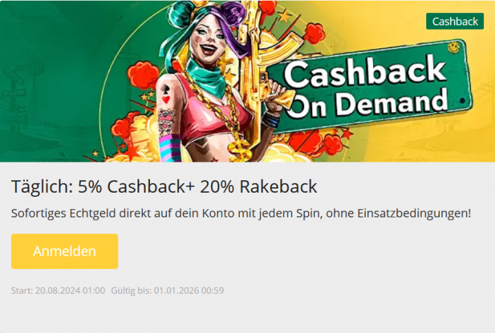 - Cashback on Demand – täglich 5% Cashback bis zu 200€ und 20% Echtzeit-Rakeback bei deinen Spielrunden