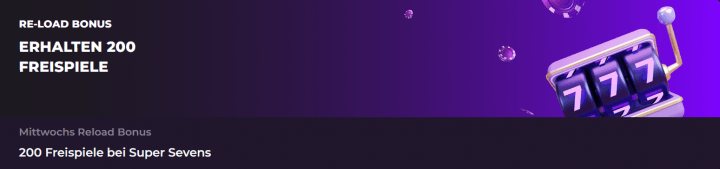 Jeweils montags, mittwochs und freitags bietet der Anbieter noch drei Reload Boni an. Hierbei handelt es sich je nach Angebot um ein zusätzliches Bonusguthaben, Freispiele oder eine Kombination aus beidem.