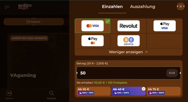 Verfügbare Zahlungsmöglichkeiten im RodeoSlot Casino: