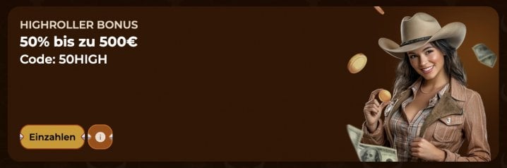 Mindesteinzahlung: 300€, Code: „50HIGH“