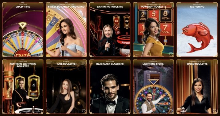 Live Casino, Live Game Shows sowie Karten- und Tischspiele