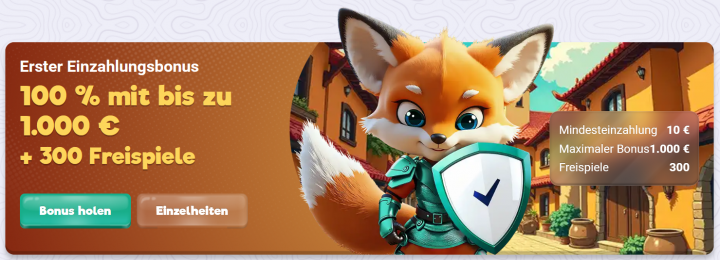- 1. Willkommensbonus - 100% bis zu 1.000€ und 300 Freispiele