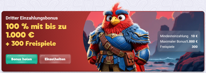 - 3. Willkommensbonus - 100% bis zu 1.000€ und 300 Freispiele