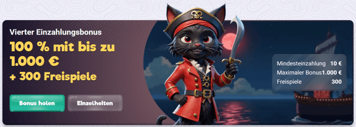 - 4. Willkommensbonus - 100% bis zu 1.000€ und 300 Freispiele