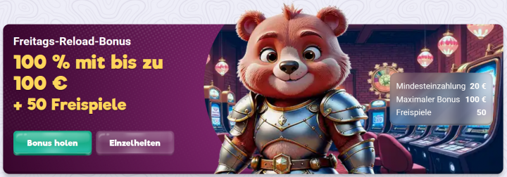 - Reload Bonus am Freitag - 100% bis zu 100€ und 50 Freispiele