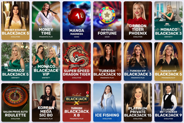 Im Live Casino erwartet dich ein klassisches, aber gut umgesetztes Spielangebot. Mit zwölf verschiedenen Spieleentwicklern bietet die Plattform eine solide Grundlage für echtes Casino-Flair. Besonders stark vertreten sind bekannte Anbieter wie Evolution Gaming und Pragmatic Play Live, die für hochwertige Streams und professionelle Live Dealer bekannt sind.