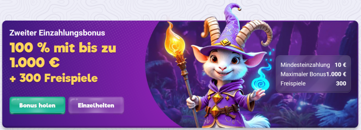 - 2. Willkommensbonus - 100% bis zu 1.000€ und 300 Freispiele