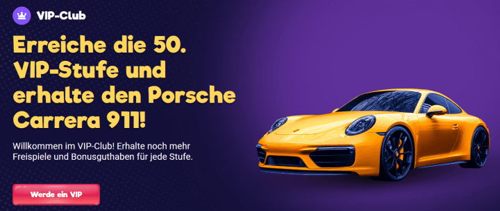 Das VIP-Programm im SafeCasino ist ziemlich umfangreich. Insgesamt 50 VIP-Stufen warten darauf, erklommen zu werden – mit steigenden Belohnungen, exklusiven Boni und einem spektakulären Highlight auf der höchsten Stufe, nämlich einem echten Porsche Carrera 911. Schon die erste Einzahlung reicht aus, um automatisch Teil des VIP-Clubs zu werden. Punkte (CP) kannst du dabei ganz einfach sammeln, denn je 10€ Einsatz an den Spielautomaten wird dir 1 Punkt gutgeschrieben. Diese Punkte können dann in Safe-Münzen (SCs) umgewandelt werden (1 CP gegen 1 SC).