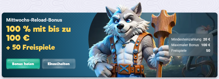 - Reload Bonus am Mittwoch - 100% bis zu 100€ und 50 Freispiele