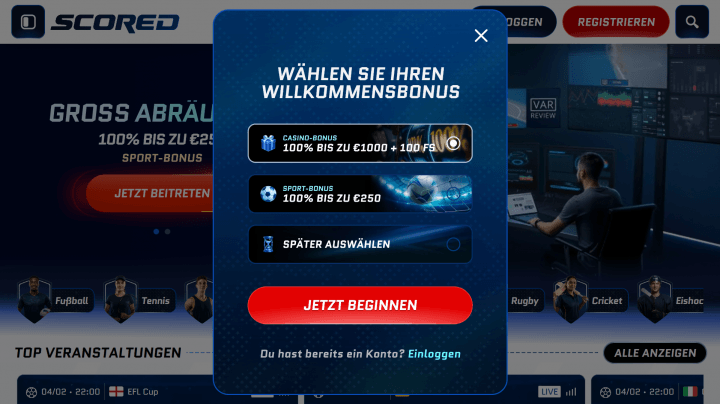 Scored Casino Willkommensbonus – entscheide dich für einen Neukundenbonus deiner Wahl