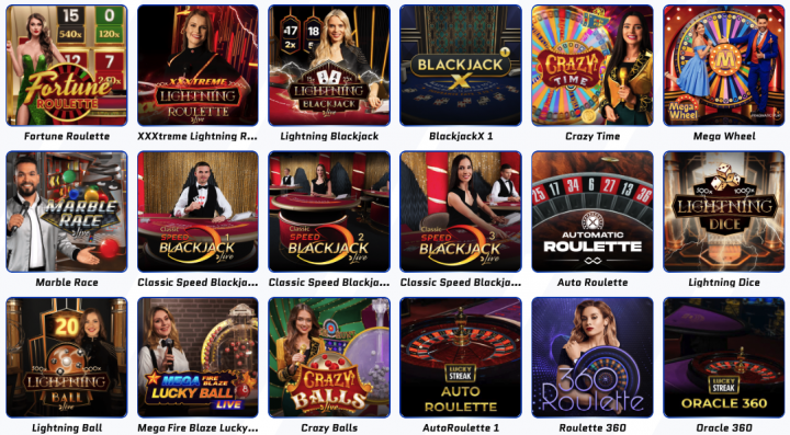 Speed Roulette, Salon Privé Blackjack, Power Up Roulette, Bet On Poker - Top Live Game Shows