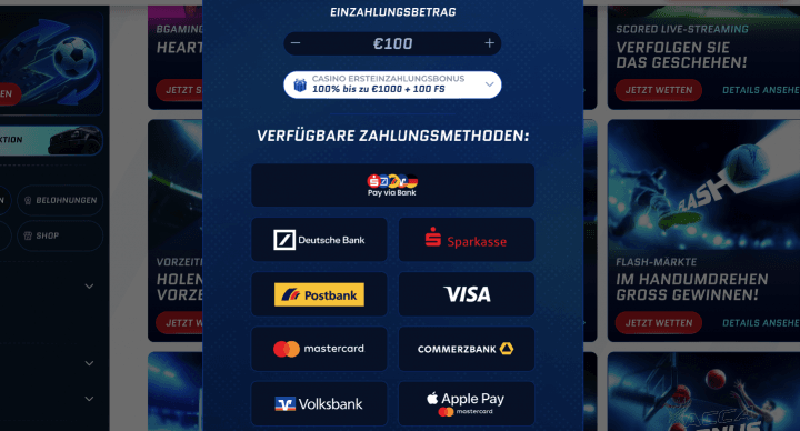 Verfügbare Zahlungsmöglichkeiten im Scored Casino: