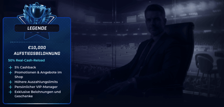 Im selben Moment nimmst du auch automatisch am VIP-Club teil. Dieser nennt sich im Scored Casino Treueclub und besteht aus 5 verschiedenen VIP-Level. Auf dem Weg zu jeder neuen Stufe kannst du dir aber noch einmal in verschiedenen Schritten eine Direktbelohnung sichern. Für ein neues Level gibt es einen Aufstiegsbonus und jedes Level beinhaltet weitere Vorteile. Hierbei handelt es sich nicht nur um einen VIP-Manager, sondern auch um Überraschungsboni, höhere Auszahlungslimits und viele weitere Prämien. Es gibt auch einen Cashback Bonus, den man sich auf die Nettoverluste sichern kann: