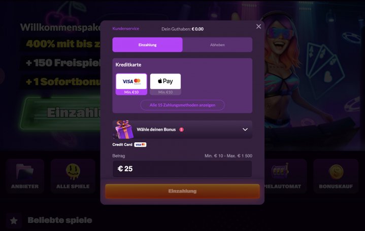 | Einzahlungsmethoden | |