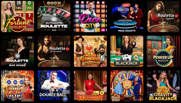 Sweet Bonanza Candy Land, Crazy Time, Gonzo's Treasure Map, Fortune Roulette - Blackjack