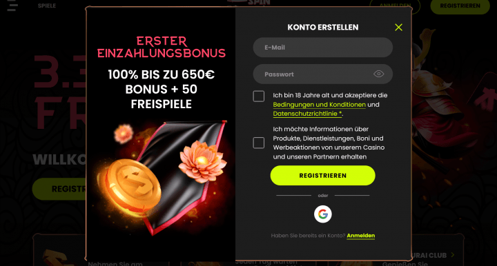 So registrierst du dich im Spin Samurai Casino und aktivierst dein Willkommenspaket