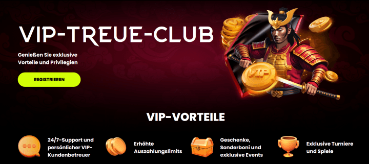 Auch das VIP- und Treueprogramm mit der Wahl, den Weg als Samurai oder Ninja einzuschlagen, sorgt dank der zusätzlichen Boni für weiteren Spielspaß. Positiv hervorzuheben sind außerdem die niedrige Mindesteinzahlung von lediglich 10€, die große Auswahl an Slots, Tisch- und Live Spielen sowie die gute Performance der Webseite, die sowohl am Desktop als auch mobil einwandfrei funktioniert.