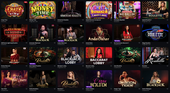 Live Casino, Live Dealer Game Shows sowie Tisch- und Kartenspiele