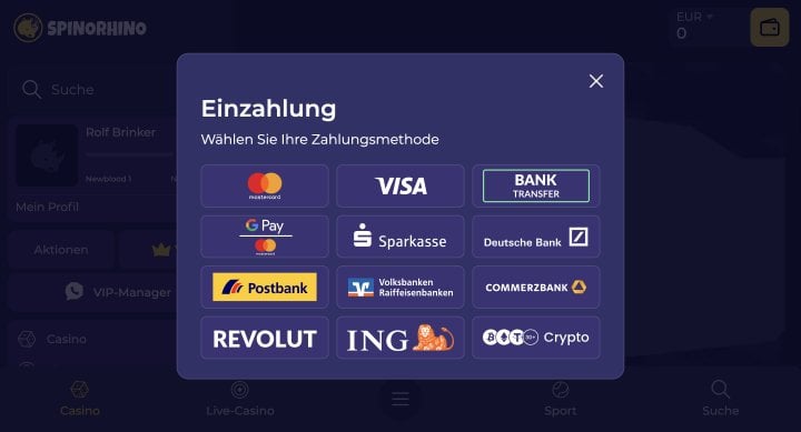 Spinorhino Casino – alle Informationen zu den Ein- und Auszahlungen