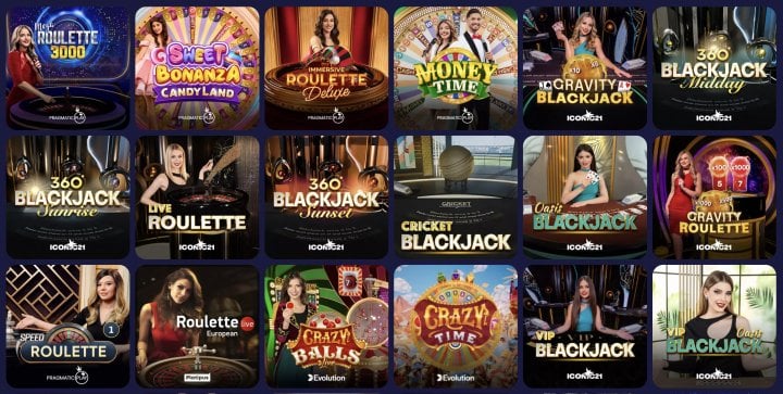 Live Casino, Live Dealer Spiele sowie Tisch- und Kartenspiele