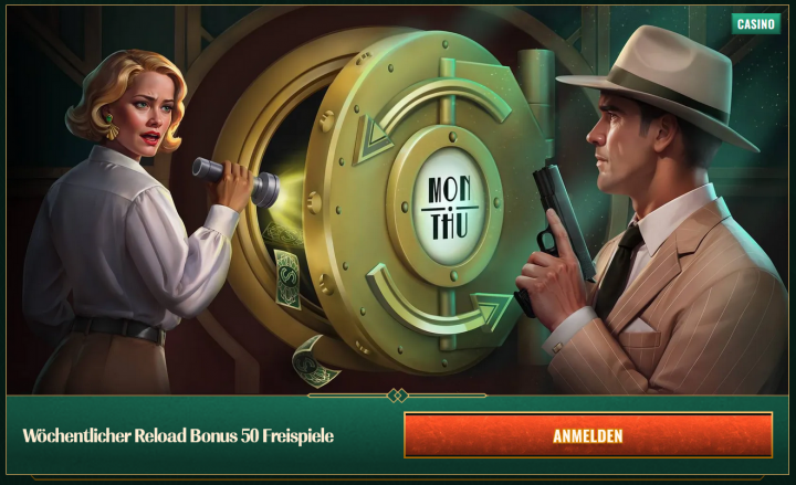 - Montag bis Donnerstag: Wöchentlicher Reload Bonus mit 50 Freispielen