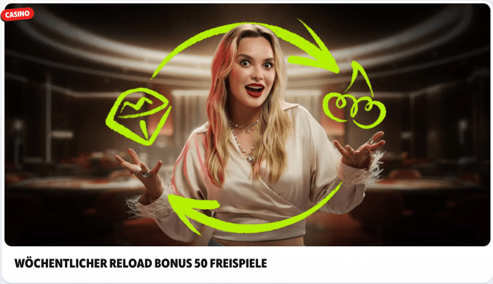 - Wöchentlicher Reload Bonus mit 50 Freispielen