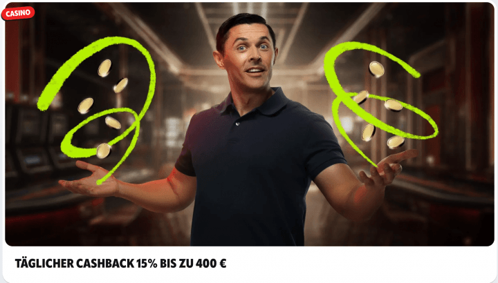 Ein tägliches Cashback von bis zu 15% für VIPs sowie ein wöchentliches Cashback im Live Casino stechen dabei ebenfalls hervor.