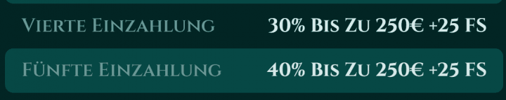 - 5. Willkommensbonus - 40% bis zu 250€ und 25 Freispiele