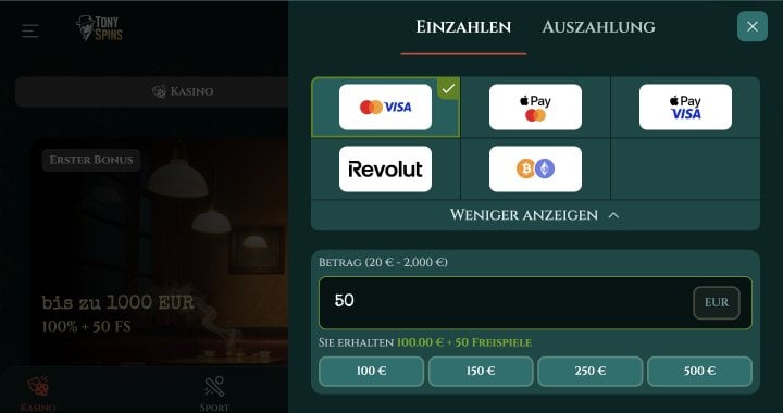 Verfügbare Zahlungsmethoden im TonySpins Casino: