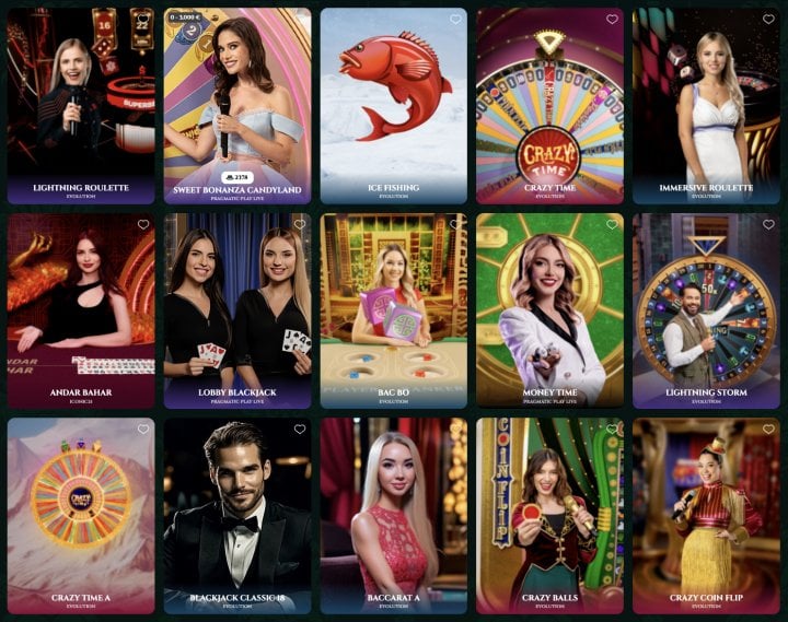 Auch im Live Casino kannst du deine Lieblingsspiele finden. Hier stehen in erster Linie die klassischen Tischspiele wie Roulette, Blackjack und Baccarat zur Verfügung. Es ist außerdem möglich, dass du auf die beliebten Live Game Shows zugreifen kannst, die für noch mehr Abwechslung und Unterhaltung sorgen.