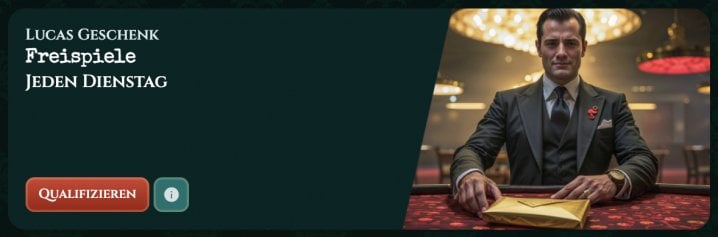 Wenn du die letzten 14 Tage Echtgeld gesetzt hast, dann bekommst du am Dienstagnachmittag Freispiele gutgeschrieben. Welches Spiel und wie viele Freispiele du erhältst, ist eine Überraschung. Bevor du den Bonus annimmst, werden dir die entsprechenden Bedingungen des Angebots angezeigt.