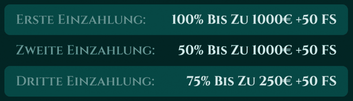 - 3.Willkommensbonus - 75% bis zu 250€ und 50 Freispiele