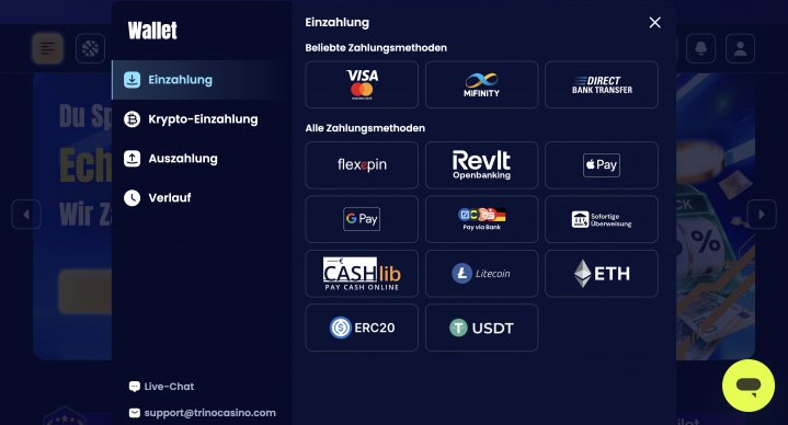 Diese Zahlungsmethoden werden im Trino Casino angeboten