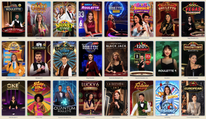 Live Casino, Live Dealer Game Shows sowie Tisch- und Kartenspiele