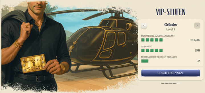| VIP-Level 5 | 2.000 € | 10.000 € | 40.000 € |