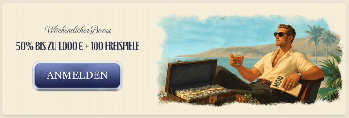 50% Bonus bis zu 1.000€ plus 100 Freispiele