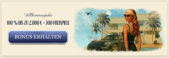 Neben dem Willkommensbonus von bis zu 2.000€ und 300 Freispielen für neue Spieler gibt es regelmäßige Reload Boni und Cashback-Aktionen für Bestandskunden. Im Folgenden zeigen wir dir, welche Bonusangebote das Casino zur Verfügung stellt.