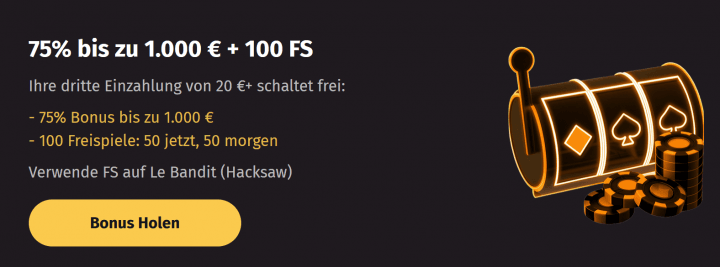 - 3. Einzahlungsbonus - 75% bis zu 1.000€