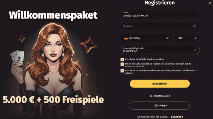 Für dich haben wir dabei einen besonderen Deal ausgehandelt. Unter Angabe des Wanted Win Casino Bonuscodes „PLAYCASINO“ erhältst du satte 125% Bonus statt der regulären 100% auf deine Ersteinzahlung.
