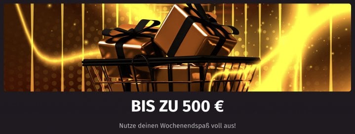Am Wochenende kannst du dir unter Angabe des Wanted Win Bonuscodes „WEEKEND“ und einer Mindesteinzahlung von 30€ ein zusätzliches Bonusguthaben von bis zu 500€ sichern.