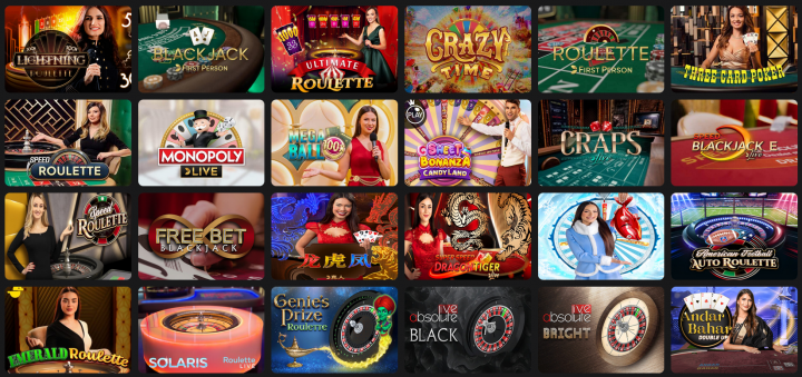 Monopoly Live, Baccarat Dance, Bet Stacker Blackjack, EZ Bingo 90