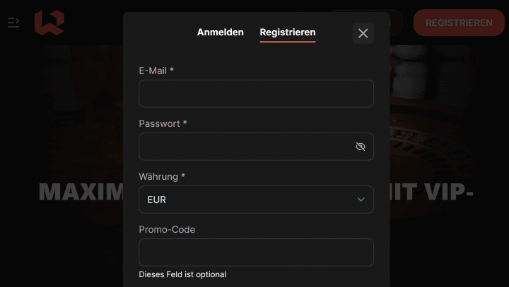 - Trage zuerst deine E-Mail-Adresse ein, wähle danach ein sicheres Passwort aus und wähle deine bevorzugte Währung. Bestätige deine Eingaben, indem du auf den Button „Fortsetzen“ klickst.