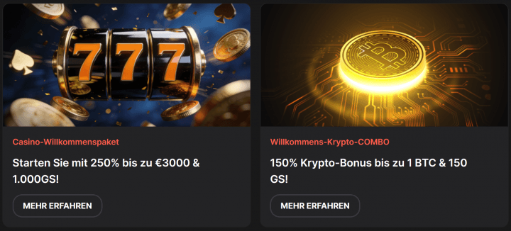 - Krypto Willkommensbonus - 150% bis zu 1 BTC und 150 Freispiele
