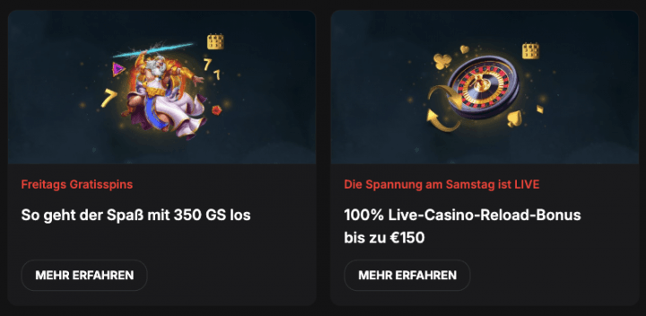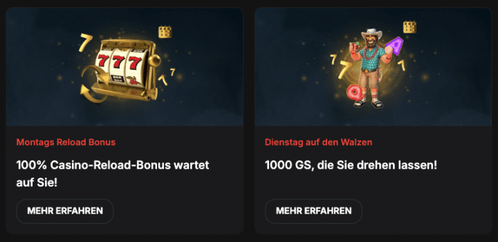 Alle diese Angebote können von dir am jeweiligen Tag direkt im Kassenbereich ausgewählt und aktiviert werden. Fans von Sportwetten können zudem auch eine Vielzahl spezieller Reload Boni für das Wettangebot nutzen.