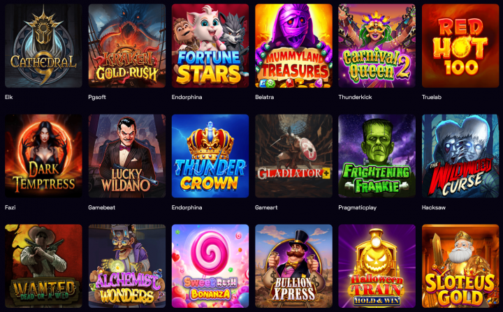 Der Anbieter kann vor allem mit einem umfassenden Spieleangebot punkten. Das umfasst sowohl Spielautomaten als auch Live Spiele sowie Sportwetten. In der Lobby kann man über 9.000 Spielautomaten finden, die von den 85 integrierten Spieleherstellern stammen und für Abwechslung sorgen. Dabei sind bekannte Namen wie Pragmatic Play, Red Tiger Gaming, NetEnt, BGaming, Endorphina, Habanero, Hacksaw und viele mehr zu finden. Leider verfügt die Suchfunktion über keine Filteroptionen, sodass man gezielt nach Schlagwörtern oder bestimmten Spielen suchen muss.