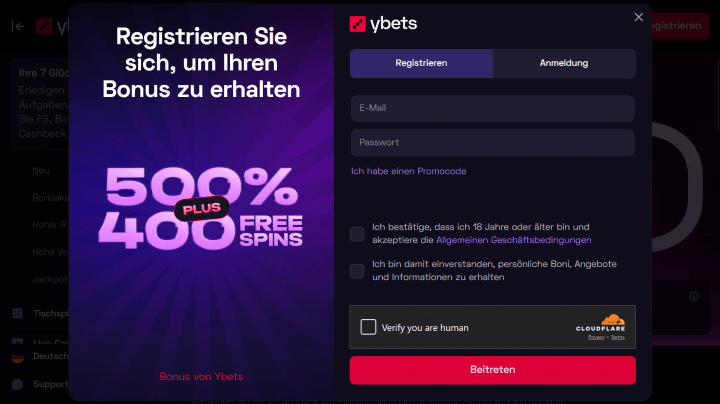 So einfach registrierst du dich im Ybets Casino und beanspruchst deinen Bonus