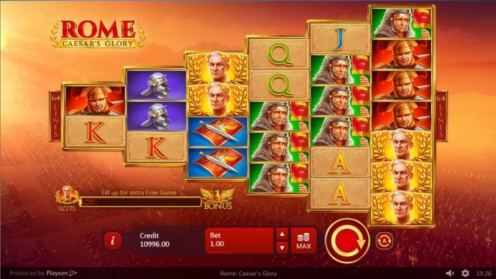 Die Auszahlungsquote und auch die Varianz von Rome: Caesar's Glory sind nicht bekannt. Beim Thema Mindest- und Höchsteinsätze liegen wir hier zwischen 0,20€ und 100,00€.