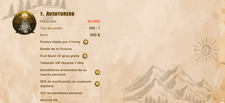 - 3% a partir de nivel rastreador y 5% en nivel aventurero. Rollover de 25x.