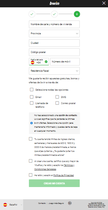 Crear un usuario en Bwin es sumamente simple. Solamente debes tener tus datos personales a la mano, tales como número de identificación, dirección de domicilio tal y como aparece en tu documentación y datos de contacto. Luego, solo debes seguir los siguientes pasos: